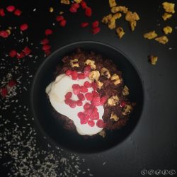 - Nach Geschmack mit frischen Beeren/ Früchten oder Jogurt genießen.