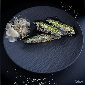 Was da so alles reinkommt, ist deiner Fantasie überlassen. Bei uns sind es Sprossen, Ingwer, Rührtofu, Erbsen-Guacamole und ganz wichtig ein leckerer Sushireis! Und wie das geht, teilen wir dir gerne mit.