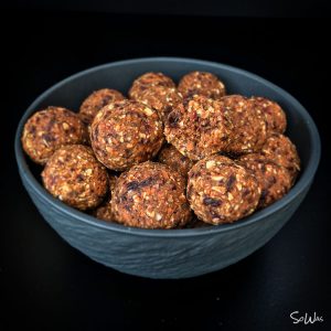 - Mit den Händen ca. walnussgroße Bällchen formen. Im Kühlschrank oder Gefrierschrank aufbewahren.